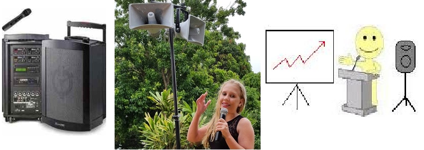Battery PA HireThis microphone and speaker system is ideal for wedding ceremonies or presentations where there is no power available. $95 per day pick-up. (from Woody Point, Redcliffe) Comes with: